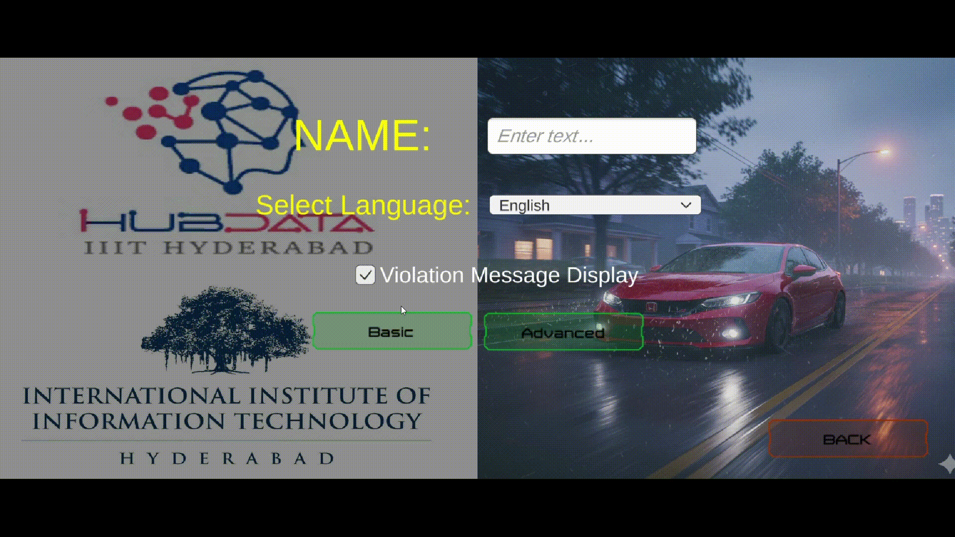 DriveRight provides real-time, map-based navigation guidance to help users follow assessment routes without breaking immersion. The traffic environment includes non-player vehicles such as two-wheelers, auto-rickshaws, and cars, simulating realistic mixed-traffic conditions. The platform also supports multilingual interfaces, enabling deployment across diverse regions and user groups, making it well suited for the Hard Track